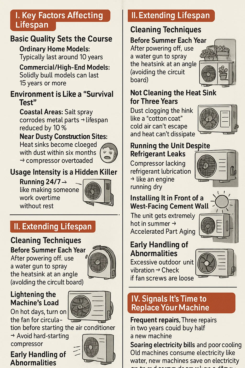 Česti popravci: Tri popravka u dvije godine mogu kupiti pola novog stroja. Visoki računi za struju i loše hlađenje: stari strojevi troše struju poput vode, novi strojevi štede na troškovima električne energije i otplaćuju se za tri godine. Zahrđalo kućište i izloženo ožičenje: sigurnosni rizici nadmašuju upotrebljivost. Još uvijek koristi rashladno sredstvo R22: više godina nije u proizvodnji, popravci su pretjerano skupi.